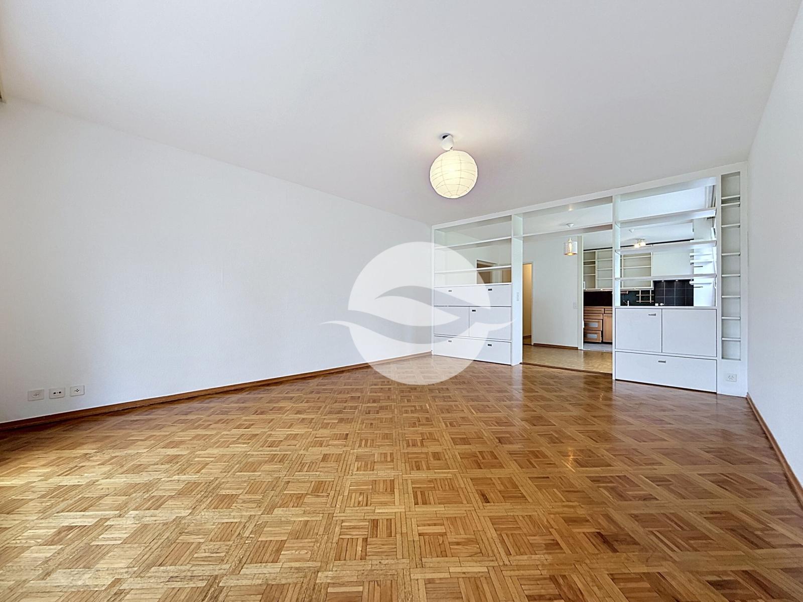 - Séjour, séparé par un meuble bibliothèque, avec accès au balcon